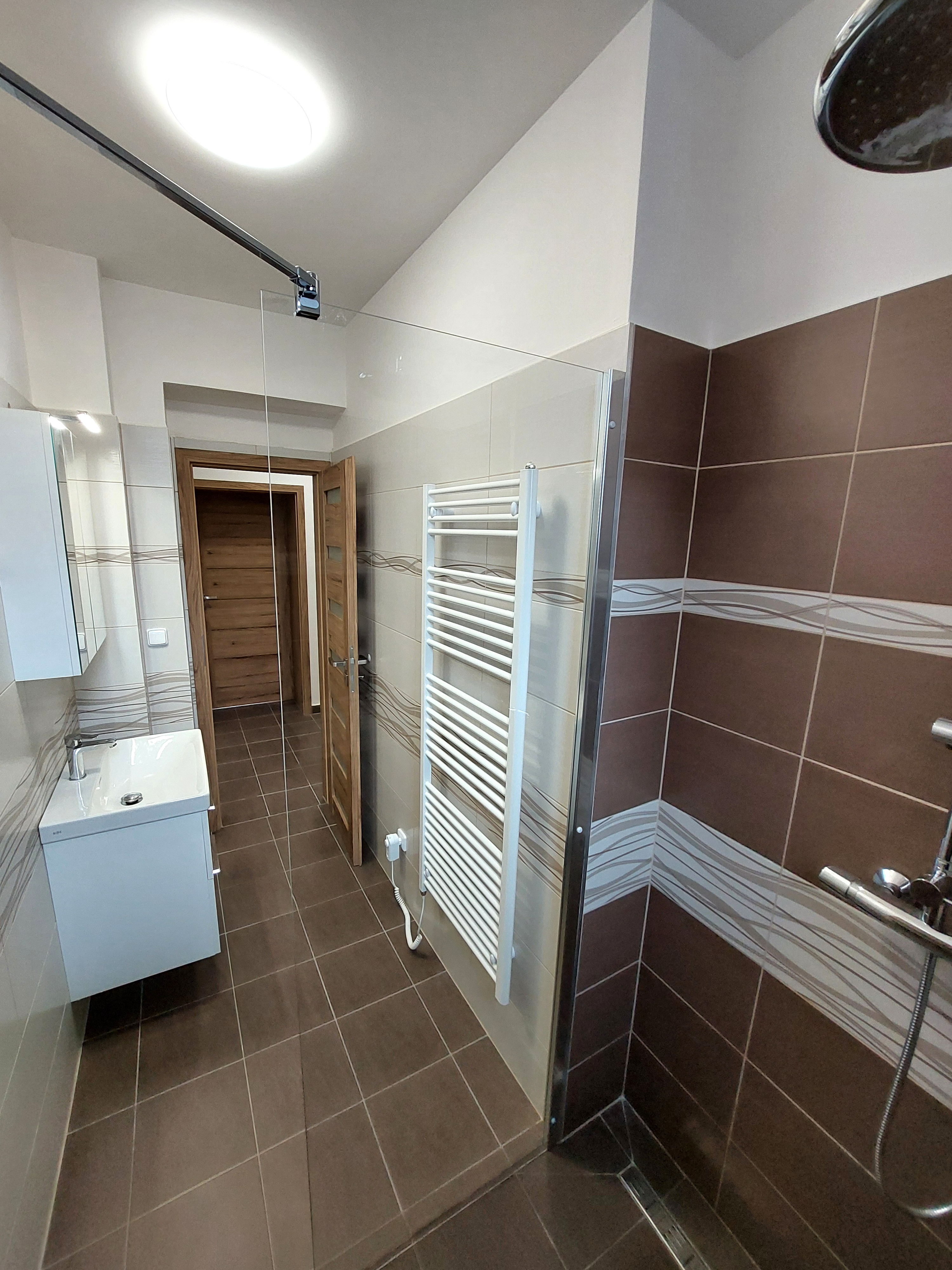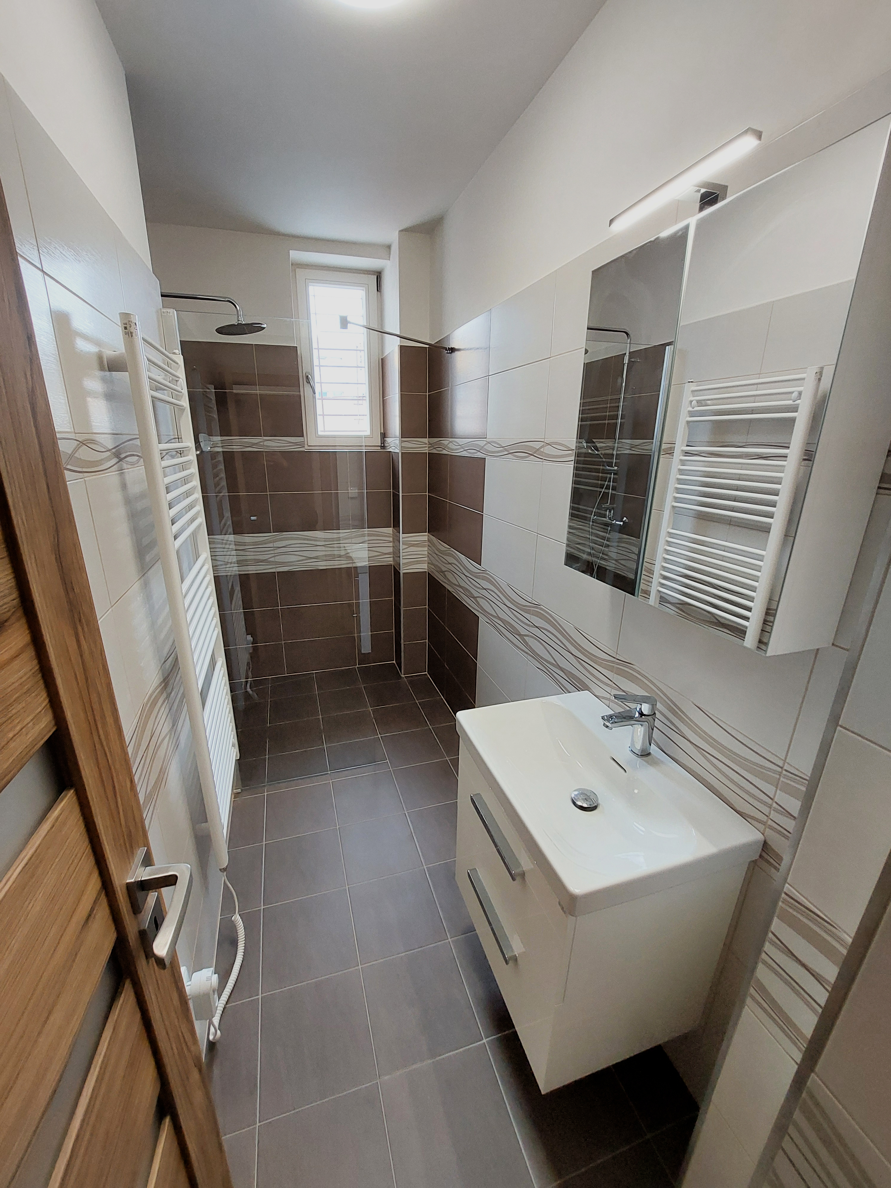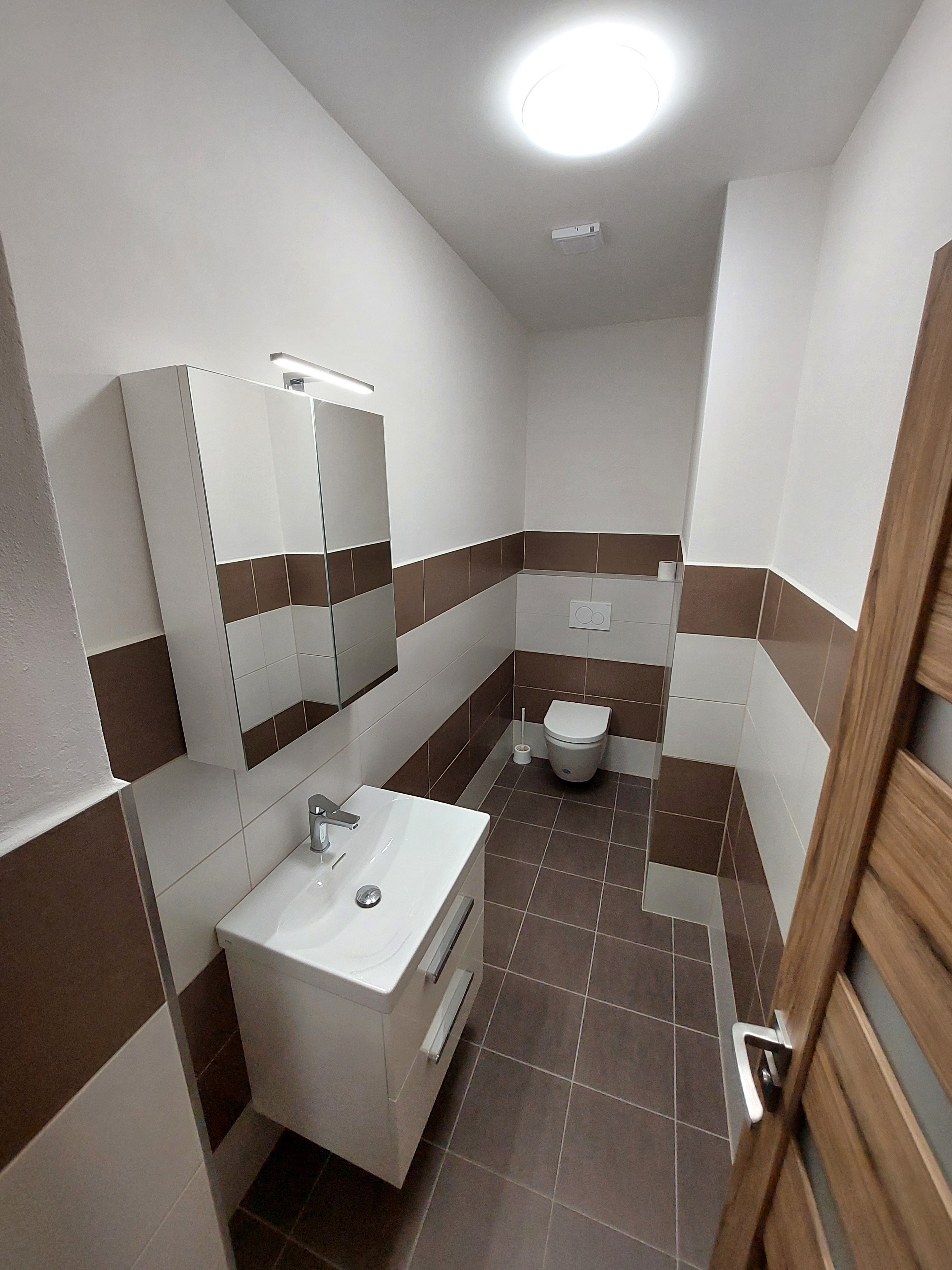 Koupelna s velkým umyvadlem a sprchou + umývárna s velkým umyvadlem a toaletou