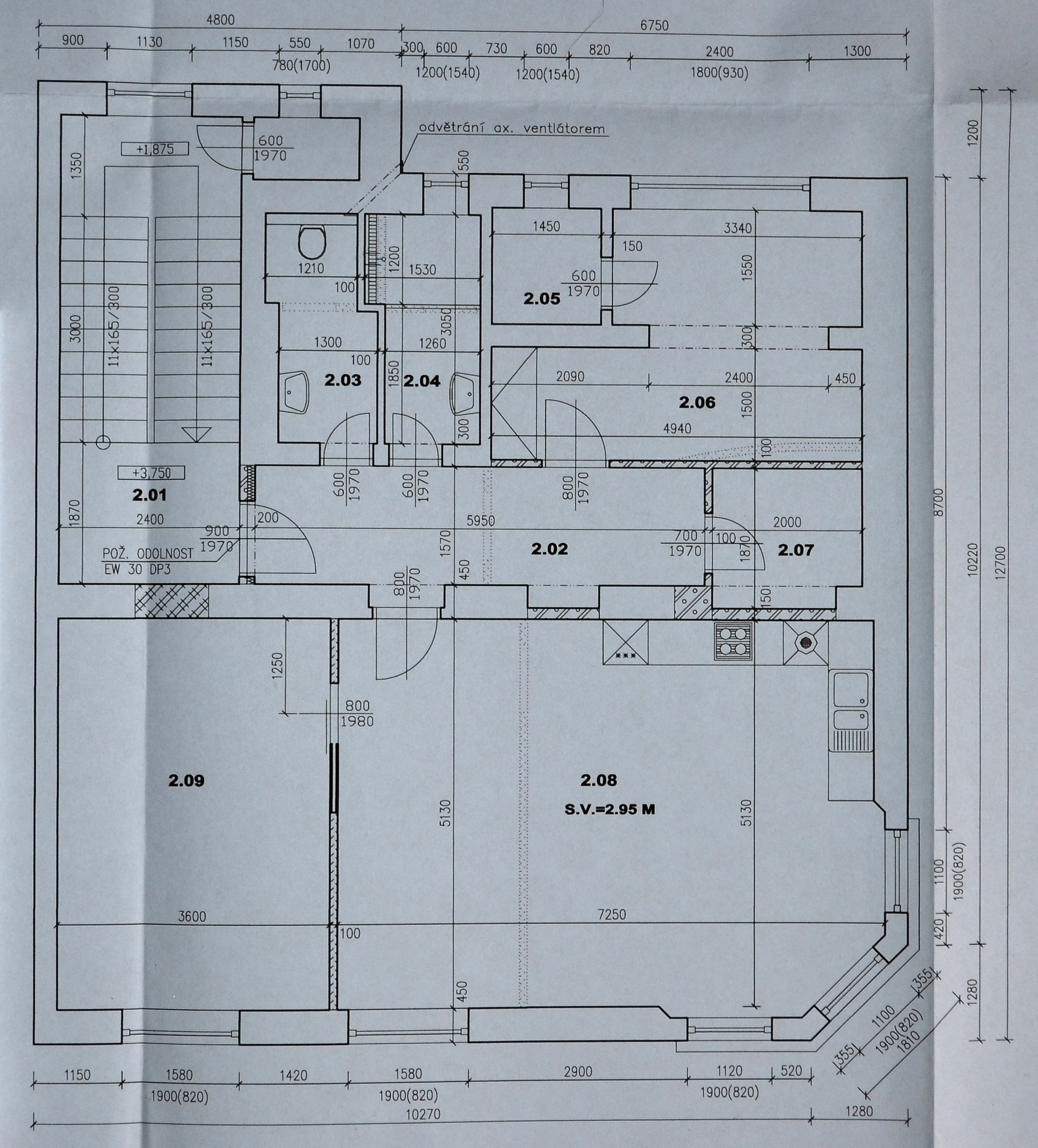 93 m², 3+kk (obývací pokoj s kuchyňským koutem, ložnice, pokoj, chodba, 2 koupelny, sušárna/komora, technická místnost)
