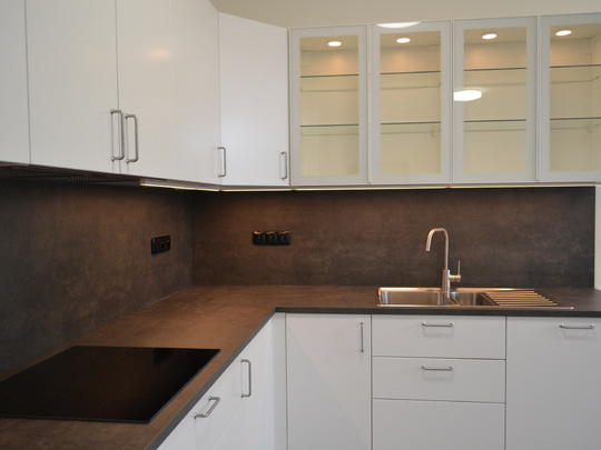 Kvalitní kuchyňský kout je vybavený elektrickou troubou, mikrovlnnou troubou, indukčním sporákem, myčkou na nádobí a digestoří. A také chytrými úložnými prostory a vestavným osvětlením.